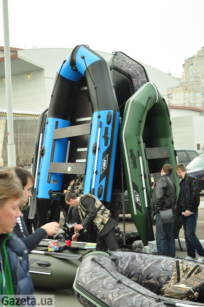 Среди представленных на выставке лодок — больше всего было резиновых, они стоили от 800 грн. Самые дорогие плавсредства — из нержавейки и пластика, оснащены японскими двигателями и эхолотом. Стоимость таких было от $30 тыс.