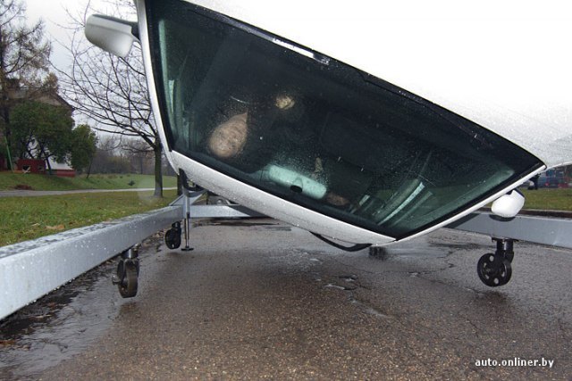 Сегодня днем Минская ГАИ провела необычную акцию. Сотрудники Госавтоинспекции предлагали автолюбителям испытать, каково это — оказаться в переворачивающемся автомобиле. Обязательными условиями участия были хорошее здоровье и пристегнутый ремень безопасности. Тренажер на базе Volkswagen Passat B5 предоставили в МЧС. Таким образом инспекторы хотели показать минчанам, с одной стороны, что чувствует человек, попавший в ДТП с переворачиванием, а с другой — насколько важно всегда пристегиваться.