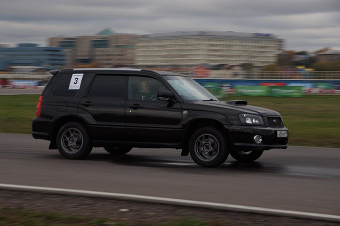 Понял, что все таки форь, даже кросс или стоковый СТИ не для асфальтовых гонок - разрыв с импрезами, которые катались после нас был 10 секунд - это пропасть! У нас между лучшим результатом на СТИ форике и самым медленным атмосферником разрыв был всего 7 секунд... Форик припадает в повороте на внешнее колесо так, что со стороны даже страшно. В внутри страшно когда из поворота в одну сторону резко качаешь в поворот в другую (ну или пытаешься поймать машину в слишком крутом заносе) - перекат машины с боку на бок настолько крут и широк, что вышибает водителя из колеи и машина теряет управление - резко рулить на скорости на таком монстре опасно!