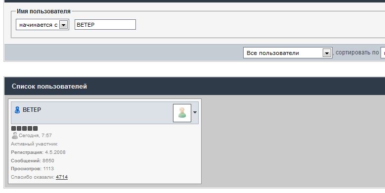 Вот, помню, то там ВЕТЕР что то писал, хотел найти через его сообщения, НО не нашёл ВЕТЕРа в пользователях.. ((: