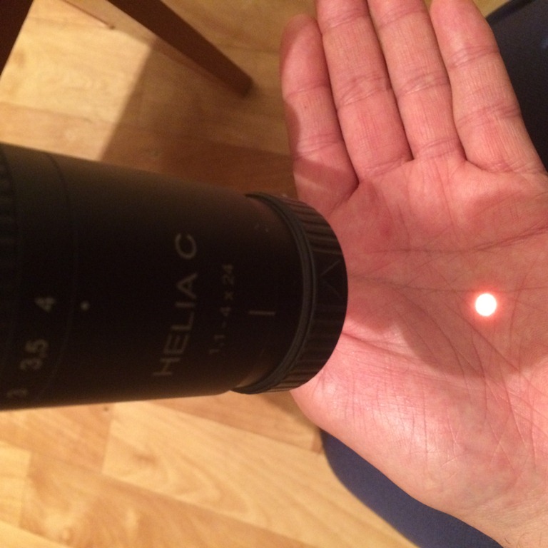 Достал карабин, глянул через загонник на темную улицу. Зрачок реально меняется. В первую очередь это проявляется тем, что на более низкой кратности уменьшается требовательность к вкладке: на 1х можно почти под любым углом смотреть, смотришь как в пустую трубку. На 4х при сильном смещении луна появляется. Загонник вообще-то для сумерек и не разрабатывался. Его задача стрельба днем навскидку по движущейся мишени. Светосильные прицелы с большой линзой, я и не утверждаю, что загонник может на равных соперничать в светосиле с "телескопом".