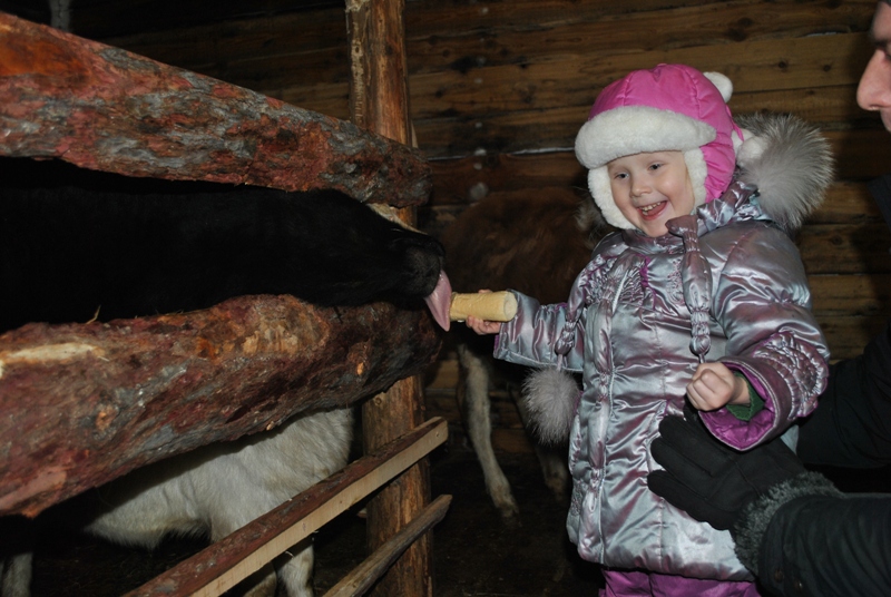 В итоге за нами ходило маленькое стадо выпрашивающее угощение во главе с наглой козой, которая вставала на меня ногами, какбэ намекая, что надо что-то дать ))) Теленок просто покорил, такой милый! На следующий год, когда дочь подрастет, обязательно приедем еще! Спасибо за елку и положительные эмоции!