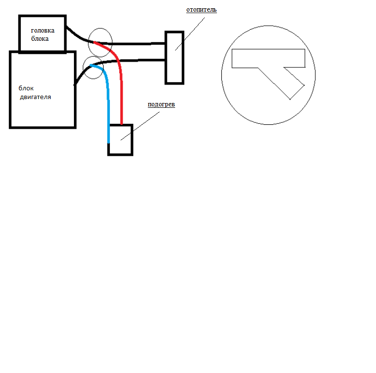 если не лень и есть возможность, то переподключи подогрев: сливная пробка блока - обратка печки