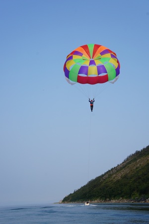 Парасейлинг (англ. раrаsailing: от parachute — парашют + sailing — плавание под парусом) — активный вид отдыха, при котором человек закрепляется с помощью длинного троса к двигающемуся транспортному средству (обычно, к специальному катеру, а зимой к автомобилю 4вд) и благодаря наличию специального парашюта парит по воздуху. Мы осуществляем подъем от одного до двух человек. Парасейлинг является популярным развлечением во многих курортах мира.