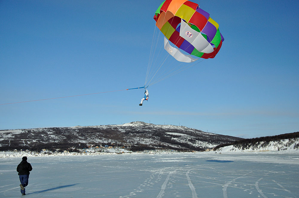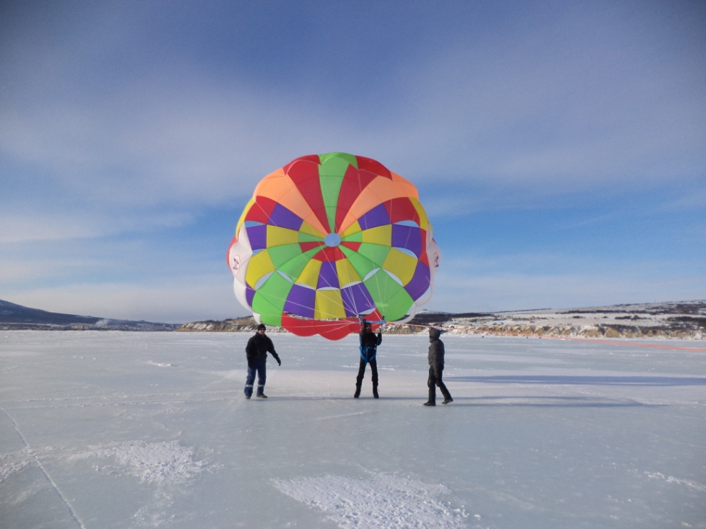 Хотите получить адреналина и множество эмоций, мы поможем вам с этим, зимой мы предлагаем Вам зимний вид парасейлинга. Высота подъема по желанию до 60 метров (ориентировочно 2 девятиэтажки). Во время полета пилот буксировщика выполняет для катающего на парасейле по желанию множество трюков: катание со сноубордом, с резким отрывом от земли, свободное падение на парашуте и тд.