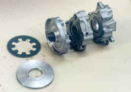 Ведомый вал проходит сквозь гидравлическую часть, приводя во вращение задний масляный насос посредством стального штыря (на фотографии не показан).