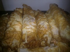 Из раскатанного теста нарезаем полоски шириной 2-2.5 см и длиной 15-20 см. В каждой полоске делаем две прорези повдоль и через них выворачиваем кончики полоски, которые потом слепляем друг с другом (а можно и не слепливать, можно и одну прорезь, можно и короче и т.п. - как у кого фантазия работает).