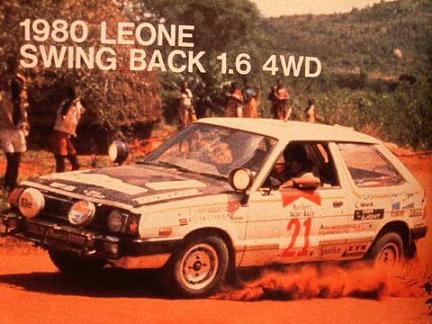 Команда Subaru Rally Team Japan под руководством Нориюки Кодзеки (основатель Subaru Tecnica International STI) использовала Subaru Leone купе, седан DL и RX турбо в Мировом Чемпионате по Ралли с 1980 по 1989 год в нескольких гонках в каждом сезоне . Водителями в различных гонках были такие гонщики как Ари Ватанен, Пер Экланд, Шекхар Мета, Майк Киркланд, Поссум Бёрни и Гарольд Демат. Майк Киркланд финишировал шестым в общем зачёте и выиграл в своем классе по группе А в Ралли Сафари в 1986м году. В этом году Subaru была единственным производителем, который использовал полный привод и турбонаддув вместе. Subaru заменила раллийную модель на Legacy RS в течении 1990-1992 годов и впервые приняла участие в полном гоночном сезоне Мирового Чемпионата по Ралли с аналогичной моделью в 1993м году.