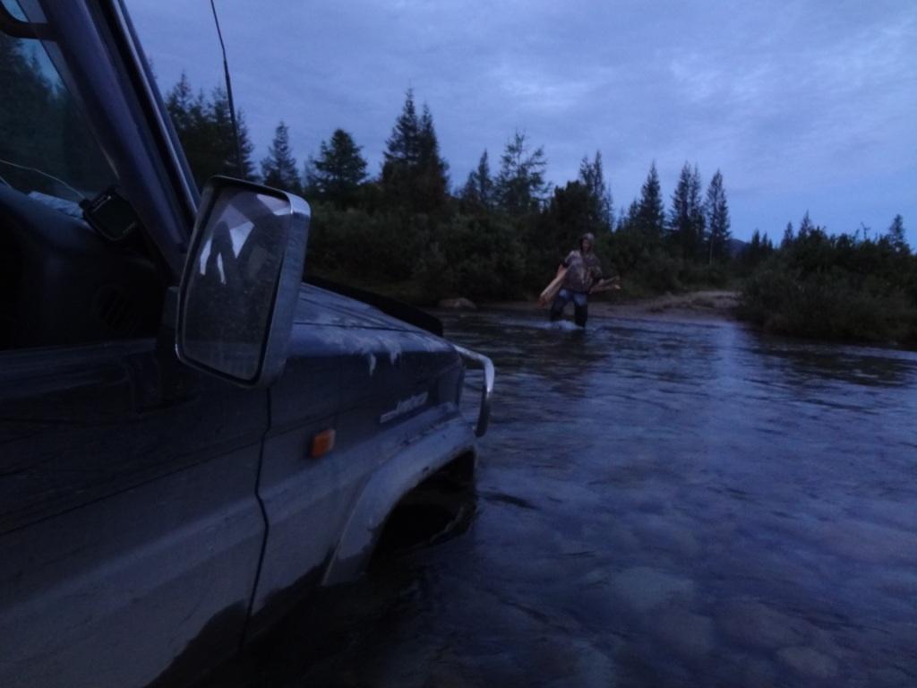 Обратная дорога уже немного знакома, идем спокойно, УАЗ пару раз садится, тягаем его при необходимости уже моей машинкой и потихоньку подъезжаем к 21-у киллометру. По пути встречали рыбаков ловящих в речках хариуса.