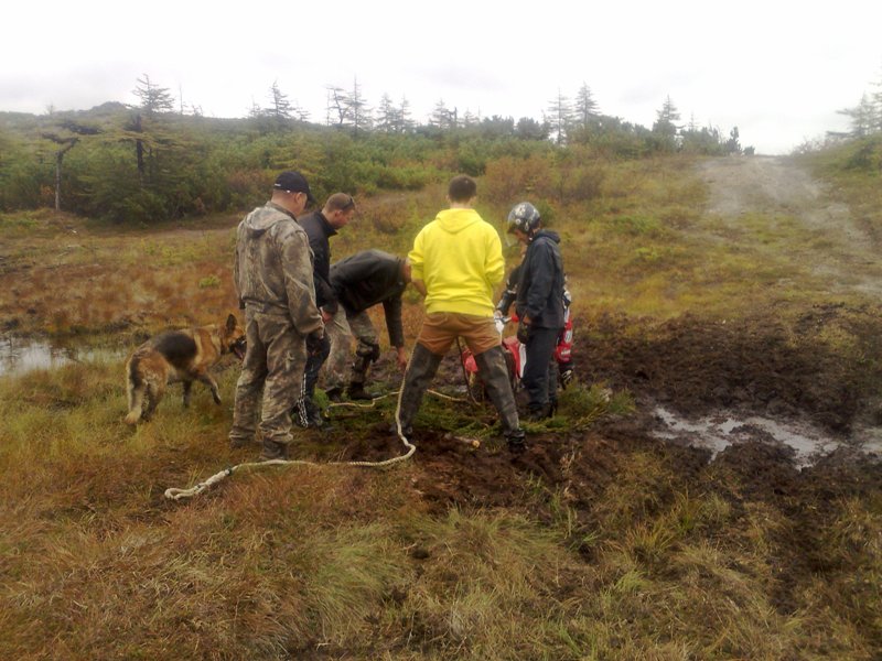 офигенно прокатились, заблудились, застряли, что чуть лебедку не спалили))))) Хайджек на метр с лишним заглубили, но выбрались!!!!