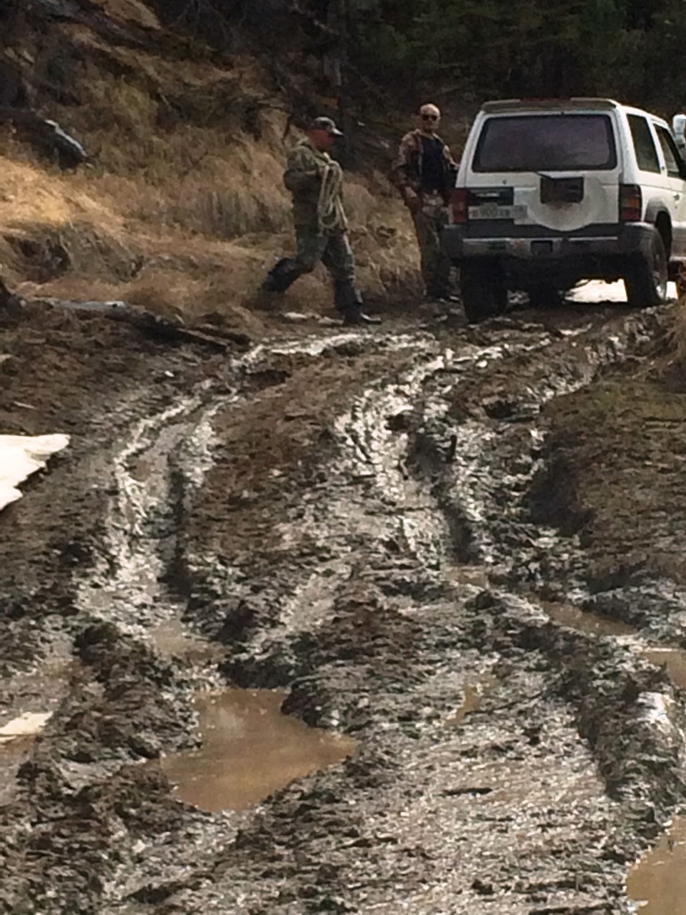 На обратном пути заехали на "Черный ключ"(просто прокатиться и разведать места). В одном из своротков с дороги встретили таких же как и мы на Делике. С мужиком с Делики решили прогуляться в одном из направлений посмотреть дорогу. Вместе с нами пошел волкодав(цвергпинчер(маленький доберман) Веня). Пройдя некоторое расстояние из кустов в нескольких метрах от нас выскочил медведь, Венька рванул за ним вдогонку, но вовремя был мной остановлен, так как в планах ловить медведя у нас не было. Дальнейшую разведку местности решили не продолжать и вернулись к машинам.