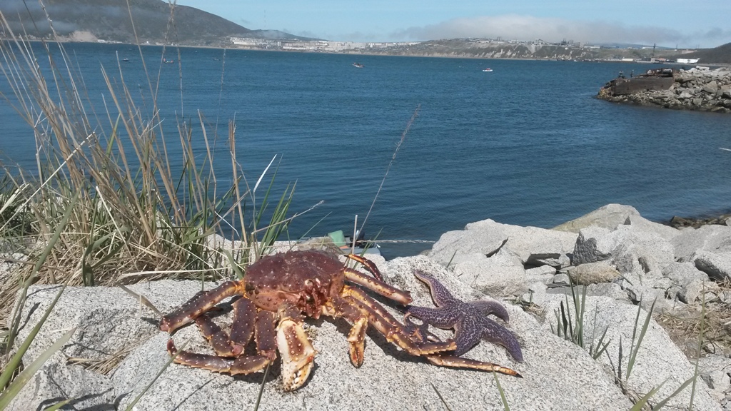 Марчеканская отсыпка сегодня (военный пирс): ловили с лодки, помимо камбалы на удочку поймали минтая и красавца камчатского краба. В краболовках одни морские звезды, с обеих сторон пирса.