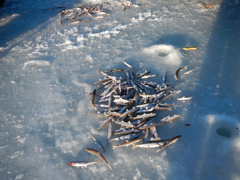 Вчера яна 12кг корюшки и мелкая и крупная. одна зубатка большая. ловил около рыб завода и возле вешок вдоль дороги.