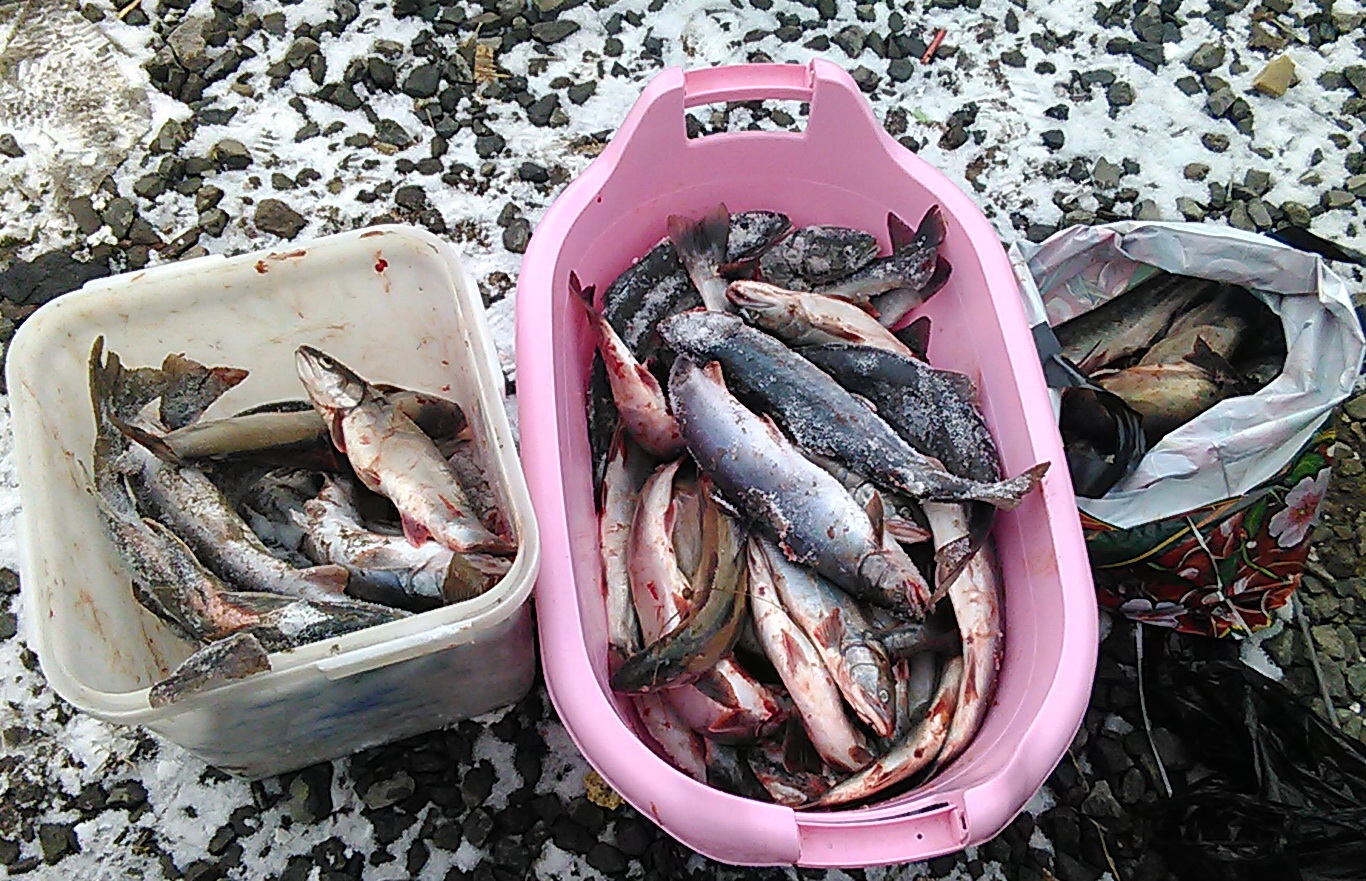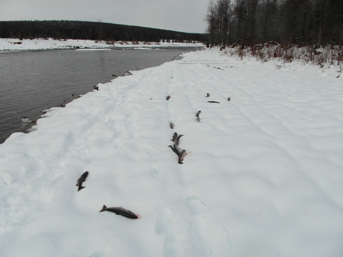 На одной из ям задержались на три дня, хариус пёр, в основном с икрой (пару ванн поймали)