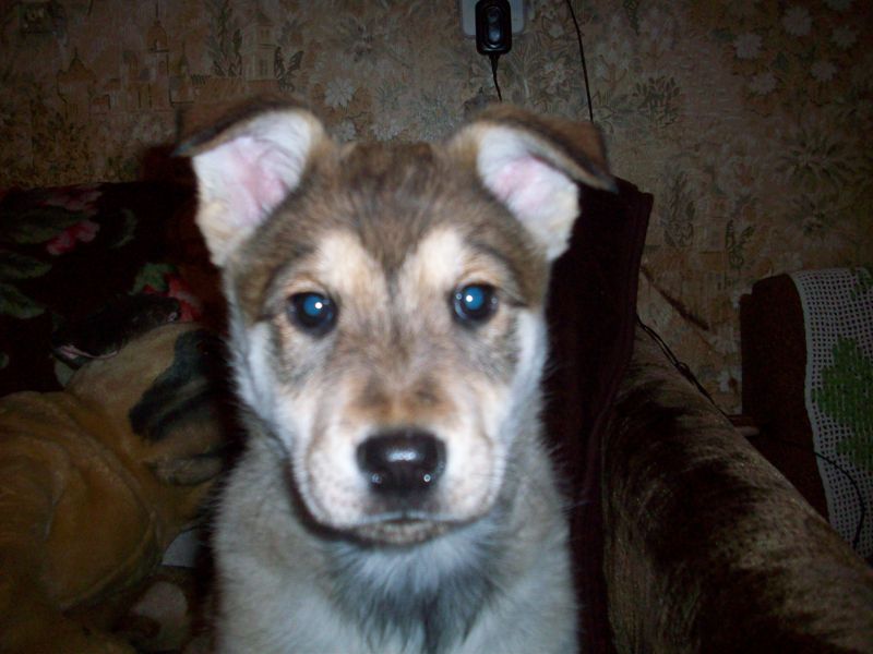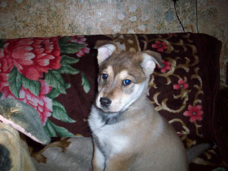 собака истощенна (кожа, да кости), промёрзла и безумно добрая. за ребёнком ходит хвостом,