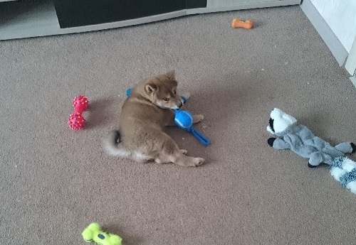 Был размером с кота, точнее была, щенок же.