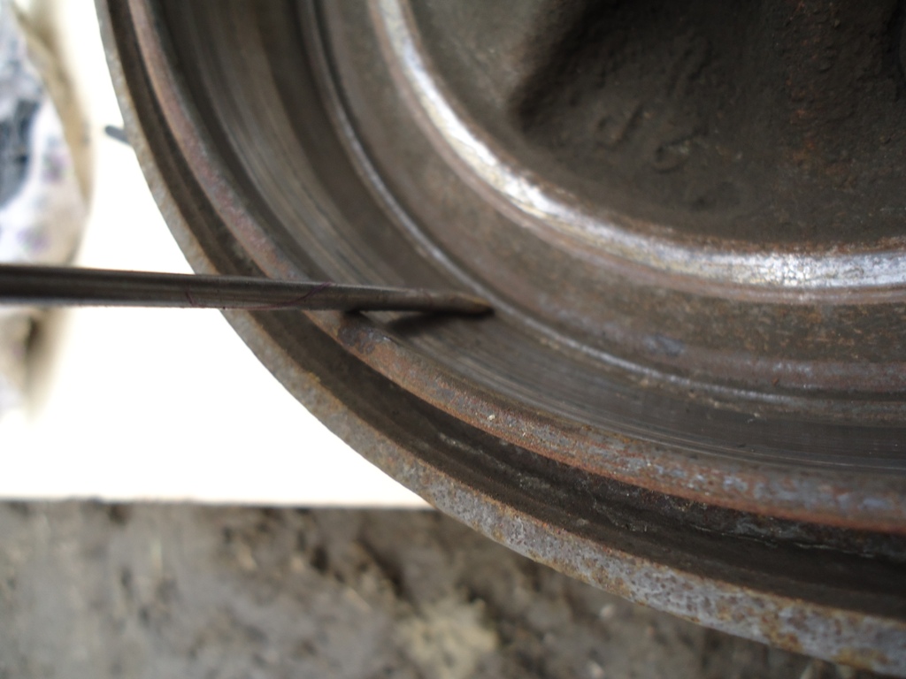 Ну, в ходе разбора барабанов снова выяснилось, что там лазили рукопопы. Я даже не особо удивился=)) Во, первых, самое, что нелепое - в правом барабане оказалось аж 2 штока, которые стоят между колодками, устанавливая их на необходимом расстоянии друг от другу. Один там по конструкции есть. А второй, как запаска, там в барабане и болтался до кучи. Жуть)) Плюс в одном барабане сломано ухо хреновины, которой манипулирует пружина при натяжении ручника. Не помню, на какую сторону мы поставили целую, но факт в том, что только в одном барабане она работает. Но ручник есть, держит. Не могу сказать про крутые уклоны, но небольшие держит нормально даже одной стороной. Плюс еще одна металлюка была с одного краю завернута в бараний рог, но технически это оказалось не критичным. Старые колодки, естественно, были с вырабаткой. причём весьма неравномерной. Их я поленился сфотать, извиняюсь. Барабаны тоже оказались с выработкой. На левом ещё-более менее, а правый нехило выработан, фото прилагаю ниже. Плюс еще выяснилось, что у меня стоят проставки по кругу. Мм 30, и вероятно, просто для вида, чтоб колеса из арок чуть выходили. Али практично решили изменить ширину колеи, кто знает.