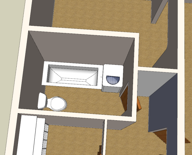 Нажмите для просмотра прикрепленного файлаНажмите для просмотра прикрепленного файла3. т.к. стиральная машинка выпирает в дверной проем и частично его перегораживаем, то дверной проем смещаем в сторону нового умывальника.