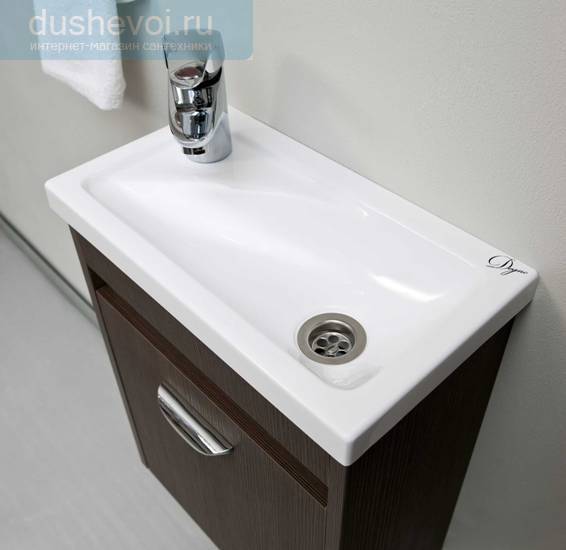 2. на противоположную стену, где был стандартный большой умывальник помещаем компактный умывальник-рукомойник, шириной 40 см, глубиной 22 см и высотой от 50 см (подвесной вариант) до 80 см (напольный вариант). см картинки: