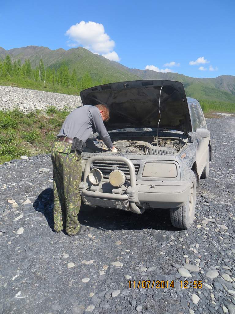 магаданской албанской цене – 15т.р. Деваться некуда, купили. К вечеру наш мост был собран – в него воткнули полуоси и редуктор от купленного моста, остальные «потроха» сняты и отложены до нашего возвращения – решено взять с собой в Магадан всё, кроме чулка. Итого ремонта: переборка моста с заменой редуктора и полуосей, заправка его маслом, замена моторного масла и воздушного фильтра, сварочная работа (лопнула подставка рамы под передний редуктор). Отдал 15т.р. за мост и 4,5т.р. за ремонт с материалами (маслами). На всякий случай, координаты мастерового, бывшего магаданца, Володи Лопаткина: +7 (908) 597-10-52 Улан-Удэ, Боевой, 7