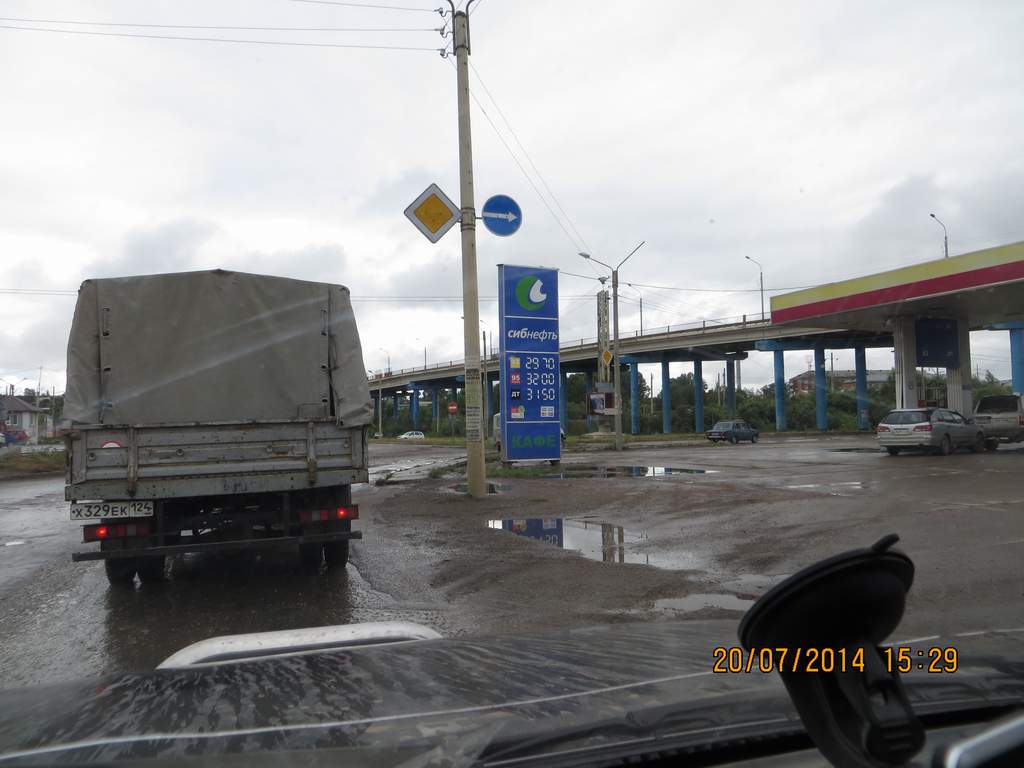 Михаил, брат Николая, как раз собирался ехать к родственникам в сторону Иркутска, договорились, что провидит нас до выхода из города, дальше он двинет вперед нас - ездит он очень лихо, зачем нам его задерживать, к тому же ему завтра необходимо участвовать в семейном мероприятии. Заправились на Альянсовской заправке наливом (тут говорят – «до полного», слова «налив» не понимают). Ребята очень рекомендовали Альянсовский 95-й Green Eco Neo, тем более что он тут по 34,80р.