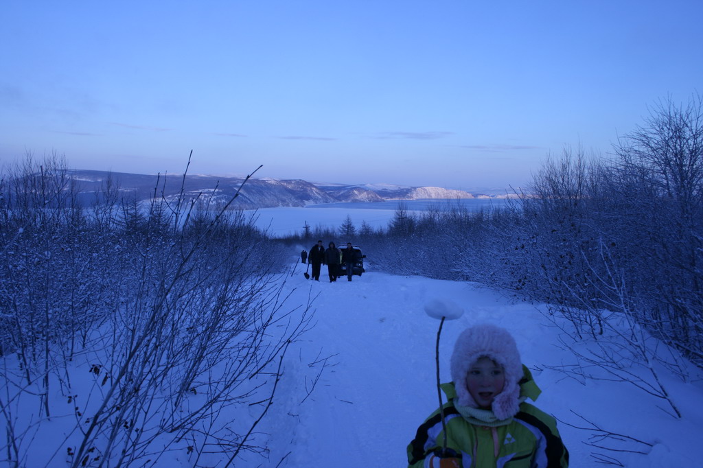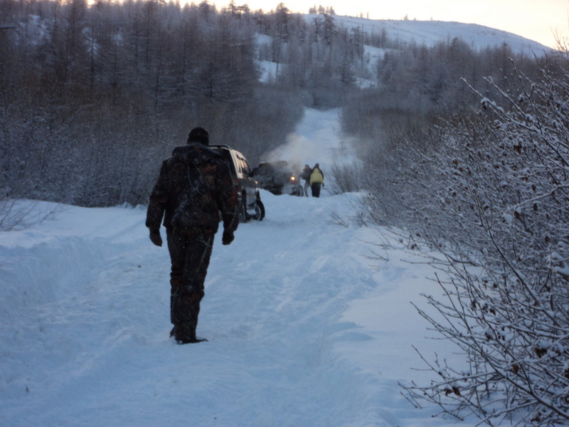 он был впереди и немного нам мешал когда застрял пока вытащили уже смеркалось