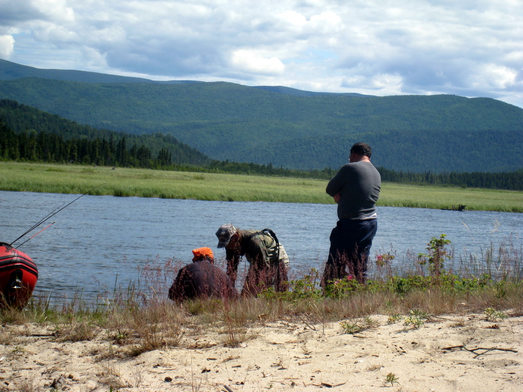 Встали на берегу, и по случаю прибытия в конечную точку путешествия (дальше – только на моторной лодке) распечатали ящик пива. Стукнулись жестянками – с приездом %)