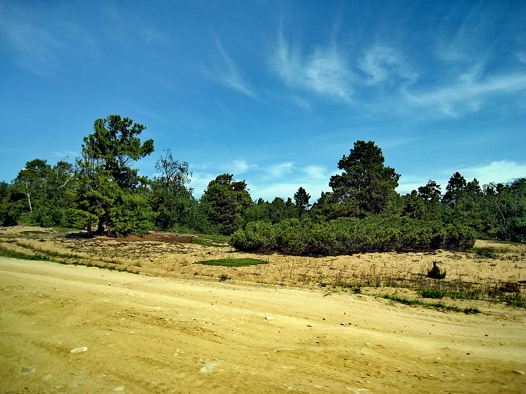 Поехали по косе на полуостров - наша цель – бывшая деревня Монахово – в 37 километрах от поста. Дорога по косе песок – но утрамбованный.. и вообще место очень красивое –