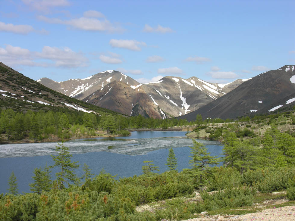 Но есть и множество непростых мест, начиная от брода через р. Чуритандя и заканчивая глубокими снежными языками длиной по сотне метров перекрывающих поперек дорогу на самом перевале Эльген-Ледниковый (дело было в конце июня).