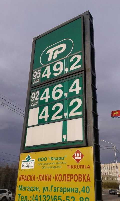 С 16 апреля цена на литр АИ-92 в Магадане будет снижена на 1 рубль 20 копеек