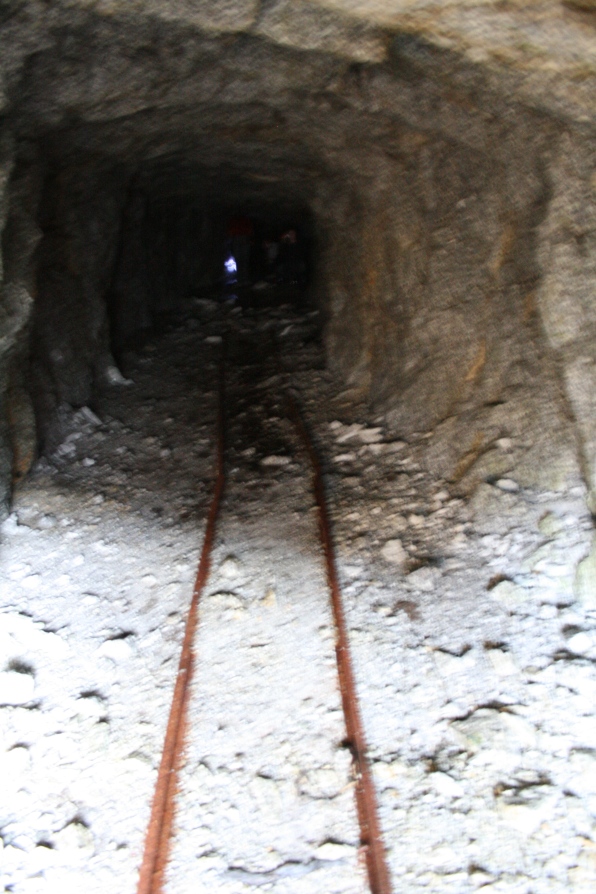 Штольни на мой взгляд самое интересное что мы увидели. Они действительно запечатаны льдом, скорее всего он образовался за долгие годы из-за перепадов температур. Пройдя по одной из них 15 метров, а затем проползя на коленях по льду еще 5 мы уперлись в….. ну наверное это можно назвать «лед». Дальше прохода нет, ледяная пещера заканчивается как раз где темное пятно на фотографии. Уровень радиации в штольнях 30-36 рентген. А вот отвалы горных пород перед шахтами фонят гораздо больше, на самом большом отвале который был поблизости было зафиксировано 373 мкР/ч. Некоторые шахты законсервированы основательно. Забиты досками обмотанными колючей проволокой, что там находится нам узнать так и не удалось, заглянув в просвет между досками я увидел в 50 см, еще один такой же импровизированный забор… Печально.