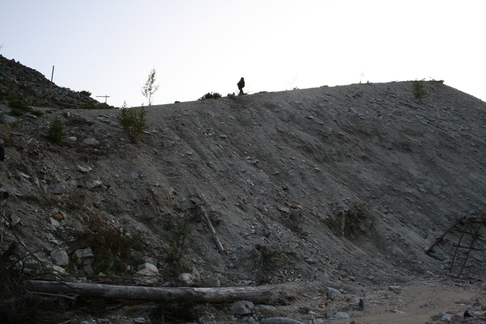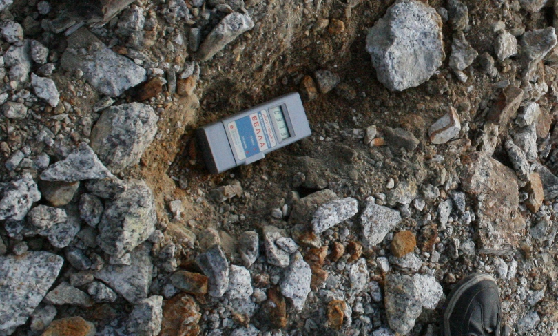 Песчаные отвалы возле фабрики, так называемое хвостохранилище. Уровень радиации непосредственно возле поверхности озера 258 мкР/ч. Но вот что интересно, если снять верхний слой почвы то фон резко увеличивается, во время всего нашего пребывания максимальный уровень радиации был зафиксирован именно на песчаных отвалах и составил 536 мкР/ч!