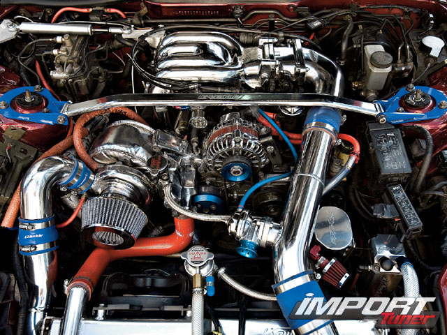 Получившийся в итоге 13В с отсечкой на 11 000 — это не что иное, как отличная возможность при неспешной езде сэкономить на топливе. Чтобы наполнить обе камеры сгорания сжатым воздухом, используется турбо-кит GReddy TD06. Сай подчеркивает, что основное преимущество этого турбо-кита не столько в количестве добавляемых «лошадок». Ведь главной причиной печальной известности турбовых роторных двигателей, склонных к закипанию, является избыточное тепло в двигательном отсеке. Установка одной турбины вместо двух стоковых секвентальных резко снижает количество выделяемого тепла, как и облегченный впускной коллектор из нержавеющей стали вместо массивного стокового из чугуна.