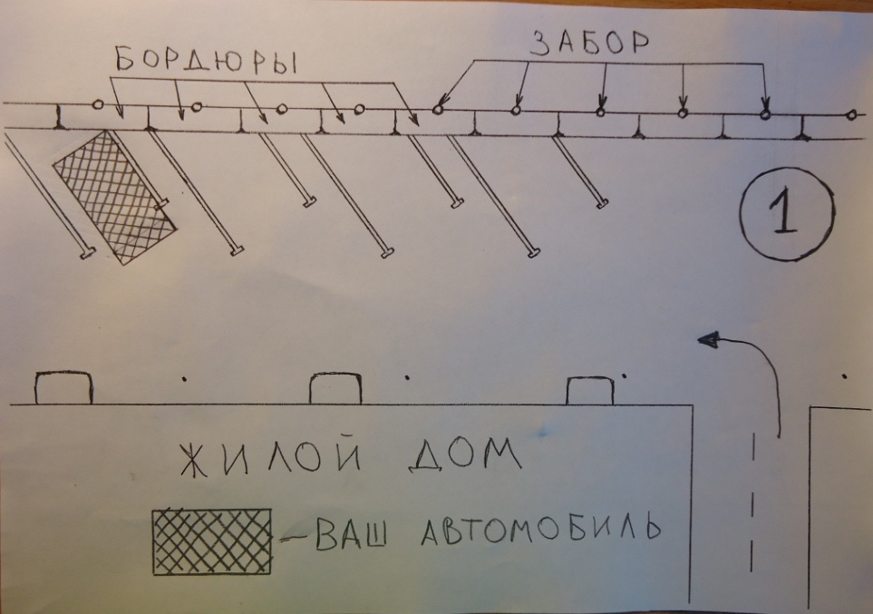 Fry: для парковки бордюр с забором не имеет значения, это просто для понимания рисунка (мог ещё нарисовать люки, скамейки ...). Я не пытаюсь, я делаю, а на ошибках учусь и приобретаю опыт.