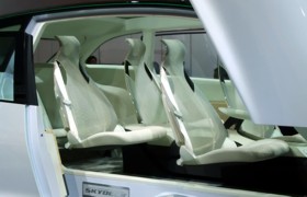 В движение автомобиль приводит гибридная силовая установка – это все, что компания сочла нужным о ней сообщить. Чуть больше известно о схеме размещения компонентов. В отличие от уже сложившейся схемы расположения батарей под полом или в багажном отсеке, в Skydeck батареи расположены в основании центрального тоннеля, что обеспечивает, по словам разработчиков, низкий центр тяжести и большее пространство в салоне. Необычна схема складывания кресел второго ряда – они полностью убираются вниз-вперед, при этом подушки и спинки также складываются, поэтому требуется совсем немного места для их размещения.