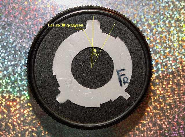 Далее понемногу доворачиваем, проверяя по результату (пятну света). В конечном итоге получается угол около 25-30 градусов.