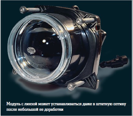 Другой способ улучшить освещение, причем подходящий для любого авто, – переделка штатных блок-фар под установку специальных модулей. Они выпускаются в нескольких размерах, с разным светораспределением и могут быть инсталлированы практически в любую оптику. Полный комплект (один модуль, блок розжига и лампа) стоит примерно 10–16 тысяч рублей, а работа по «тюнингу» обойдется в 15 тысяч. Итог – 35–47 тысяч, меньше, чем замена блок-фар на специальные, так что такой вариант даже предпочтительнее. Но и в том, и в другом случае вы получаете корректно работающие головные фары, полное представление о ситуации на дороге и комфортную освещенность пространства перед машиной.