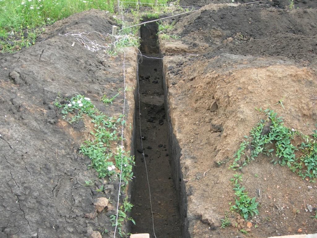 Следующий этап – земляные работы – предполагает обустройство вдоль границ фундамента, внутри очерченного бечевкой прямоугольника, котлована или траншеи. Ширина траншеи равняется внешнему диаметру шины. Поэтому на фундамент из покрышек для дома или малой архитектурной формы следует подбирать шины с минимальным внешним диаметром – это сократит объем земляных работ.