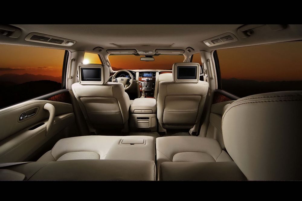 Интерьер стал более удобным, ведь согласно данным Nissan владельцы машины проводят на бездорожье лишь 15% времени. Так что внедорожник стал более комфортным, семейным. Пассажиры второго ряда получили дополнительных 100 мм пространства для ног, третий ряд, судя по снимкам, тоже вполне пригоден для поездки. «Патрол» построен на абсолютно новой платформе, что позволило снизить вибрации в салоне.