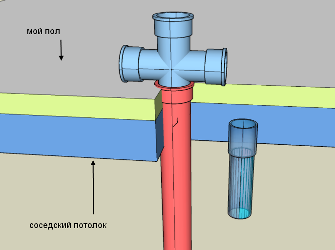 поможет отверстие на 120мм к соседу из унитаза.