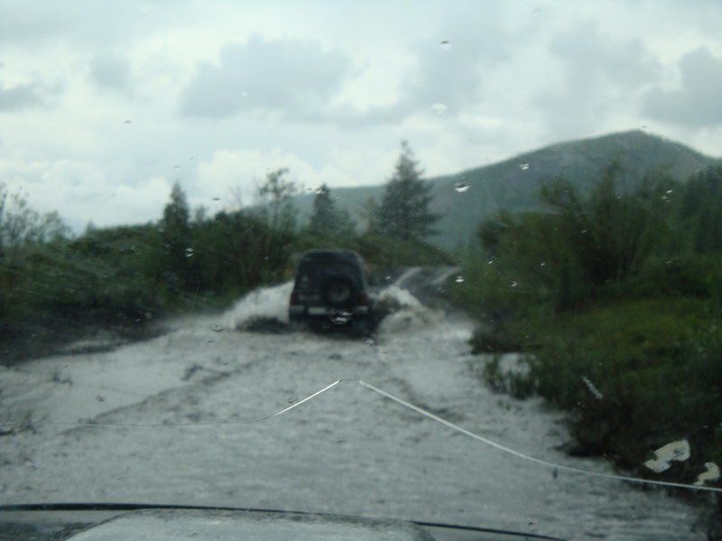 Едем дальше, дорога спускается в долину, полигоны заканчиваются, дождь тоже:) На встречу едет КрАЗ наливник, тормозим что бы распросить про дорогу, но кразист оказался хорошо поддатым и конструктивного диалога не получается