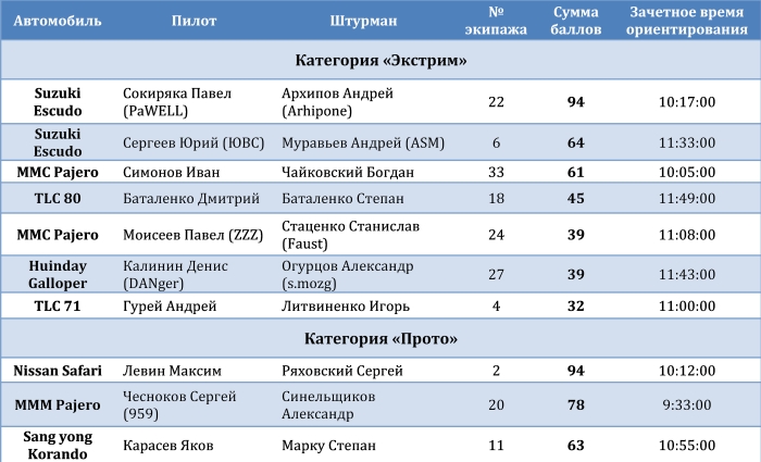 полностью согласен, тем более с учетом количества и степени поломок участников ориентирования: далеко не все экипажи смогли выйти на зрелищный триал в воскресенье
