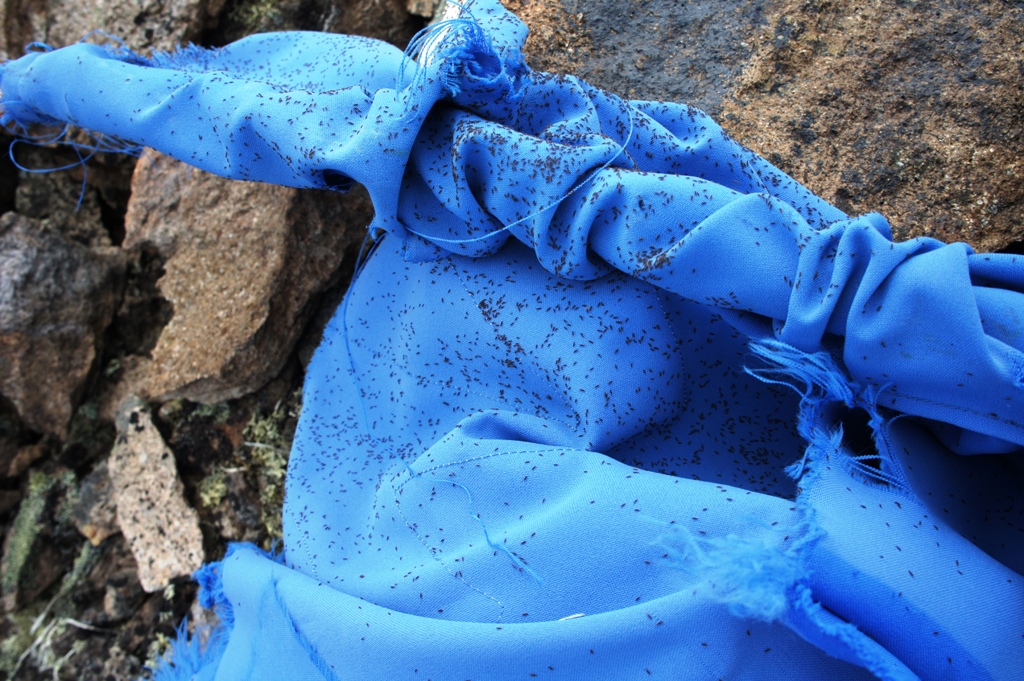Флага на месте не оказалось.Лишь поваленное пополам дерево и синие лоскутки.Собрала их на память..кто-же знаменем раскидывается?