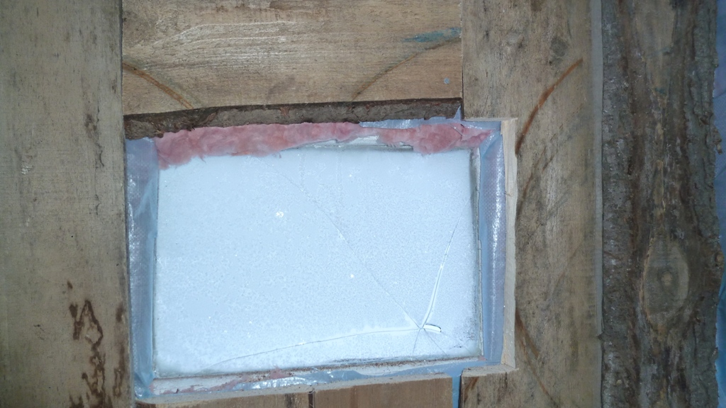здорово расшаталось разбитое окно в той стене, где дверь - осколки качаются, есть дырочка, в неё надувает снег, поэтому закрыли окно баннером