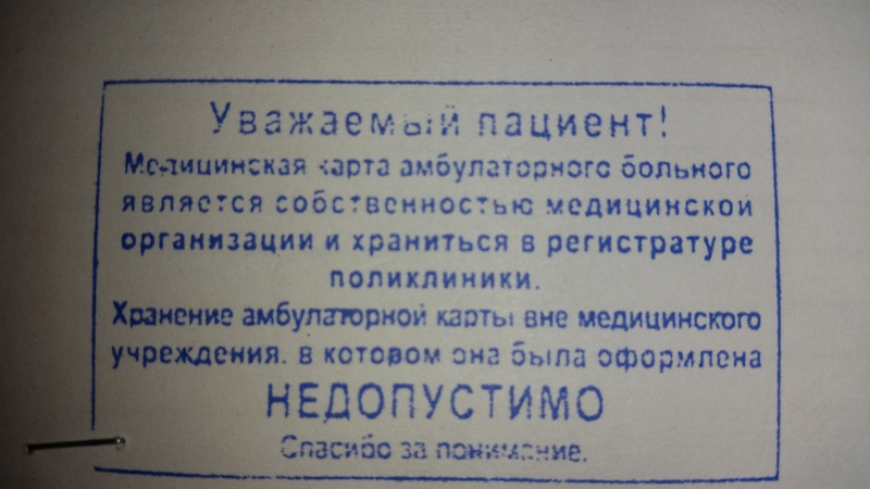Зашел в поликлинику, взял медицинскую карту и вижу на ней новый штамп:
