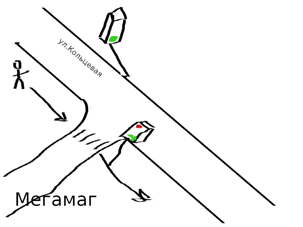 "Перекресток" - место пересечения, примыкания или разветвления дорог на одном уровне, ограниченное воображаемыми линиями, соединяющими соответственно противоположные, наиболее удаленные от центра перекрестка начала закруглений проезжих частей. Не считаются перекрестками выезды с прилегающих территорий.