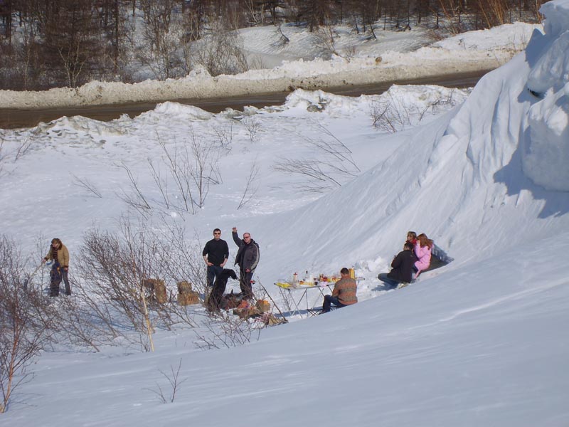 Сейчас постараюсь порыться и найти ролик который я делал в 2006 году. Он так и назывался-спуск с Магаданского.Там всегда достаточно снега для спуска. Раньше всего начинаешь и заканчиваешь в начале лета. В этом году мы там спускались 27 мая. Камушки - есть такое. Правда это верхушки валунов). Трудностей не составляют. Несолько маневров и прошел. Сам спуск начинается действительно полого. Это выкат к распадку. А дальше как хочешь. Можешь уходить в распадок, можешь по верху идти. В конце есть и чистый склон и можно между деревьев пройтись на скорости, нервы пощикотать. В конце как правило большой козырек (в 2006 я прямо с него влетел в провода, которые вдоль дороги идут)) ). В целом спуск не сложный, но гораздо интересней чем катиться до моста по Оксе. Доступен и для начинающих (главное чтобы уже стояли на лыжах, а не падали через каждые два метра).