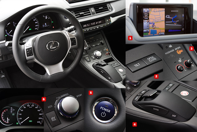 И тех и других "Лексус" собирается заманивать традиционно спокойным дизайном, технологической "продвинутостью" хэтчбека и отличным салоном - по качеству отделки и оформлению интерьера CT 200h обгоняет и "копейку" BMW, и уже немолодых конкурентов из Audi и Mercedes-Benz. Сложносочиненная многослойная передняя панель, выполненная из мягкого качественного пластика со вставками алюминия и дерева, кожаные акценты на козырьке панели приборов и окантовке центрального тоннеля; лаконичная архитектура центральной консоли, наклоненной под углом около 40 градусов, на которой место традиционного рычага КПП отведено под фирменный "лексусовский" манипулятор, напоминающий компьютерную "мышку" - аналог джойстика iDrive BMW. Селектор бесступенчатой трансмиссии при этом переехал чуть выше и логично ужался в размерах - ведь механической связи между ним и коробкой передач здесь нет.
