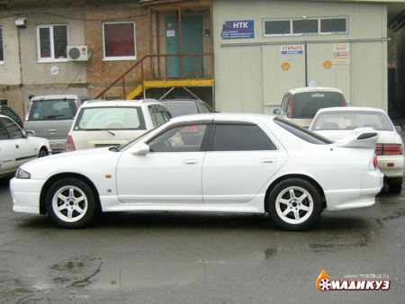После долгой подготовки была поставлена вся передняя часть от 33GTRа. Пороги и задний спойлер были куплены от седана.