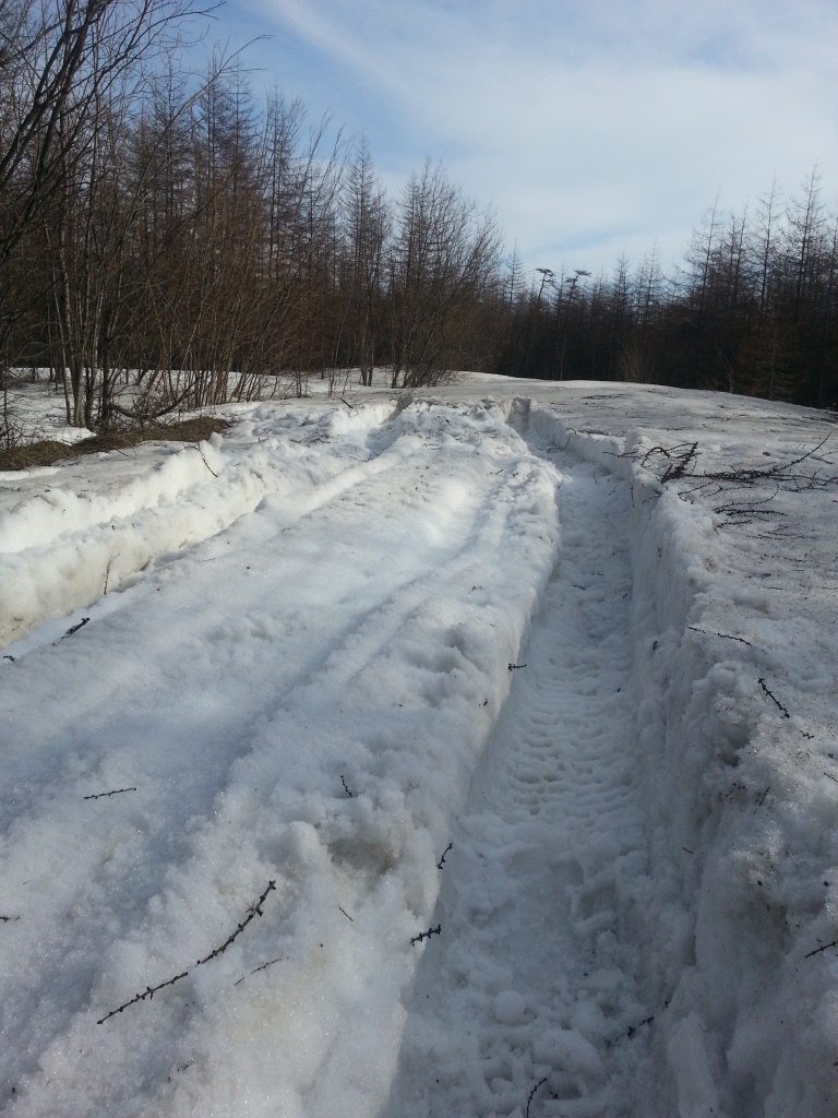 И еще - дорога в одном месте, где она проходит над обрывом осыпалась, еще 20-30 см и проехать станет невозможно. И сейчас уже было неприятно то место проскакивать - падать там есть куда.